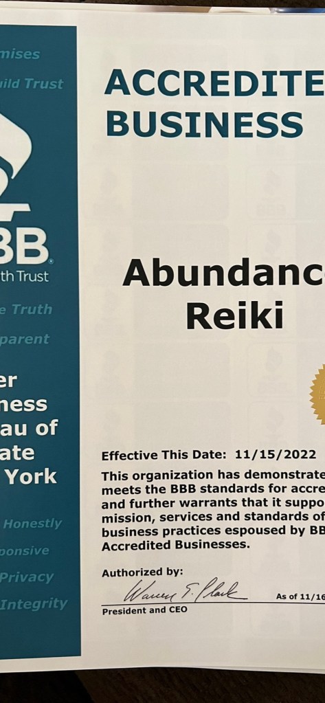 If you would like to make an appointment, please text or call 315-212-9225, or e-mail: AbundanceReiki@gmail.com